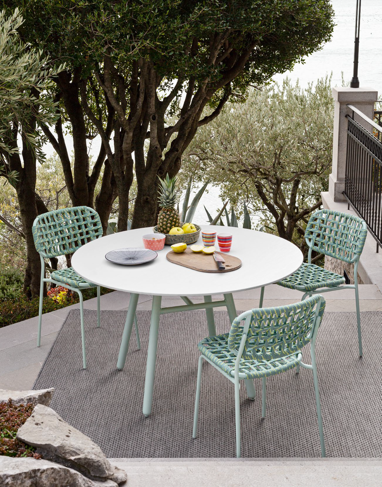 Yo, Stuhl! CB1986-E von Connubia für den Außenbereich. YO! Es ist der perfekte Sitzplatz für ein Essen im Freien mit Freunden. Es verfügt über eine für den Außenbereich behandelte und lackierte Metallrohrstruktur. Sitz und Rückenlehne können Sie ganz nach Ihren Wünschen wählen: aus Polypropylen mit dekorativer Befestigungsplatte und in Gestellfarbe oder gewebt auf Aluminiumrahmen. Das flache Geflecht erhöht den Tragekomfort und ist mit Polypropylen verstärkt, was die Haltbarkeit im Außenbereich verbessert. Die Version mit Sitz und Rückenlehne aus Polypropylen ist 4-fach stapelbar.