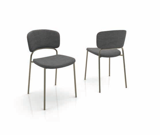 Sunrise Ein Stuhl von Zamagna. Stuhl mit lackiertem Metallrahmen, Sitz und Rückenlehne aus Sperrholz mit Polsterung in verschiedenen Materialien und Farben.