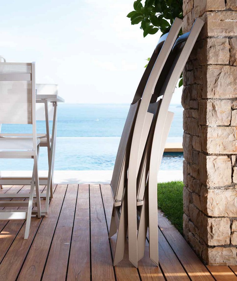 Klappbarer Esszimmerstuhl aus der Queen-Serie, komplett aus Aluminium gefertigt, in drei Ausführungen erhältlich: Weiß, Taubengrau und Anthrazit. Schlicht und praktisch, besticht dieser Klappstuhl durch seine hochwertigen Materialien, die Langlebigkeit und Witterungsbeständigkeit garantieren.