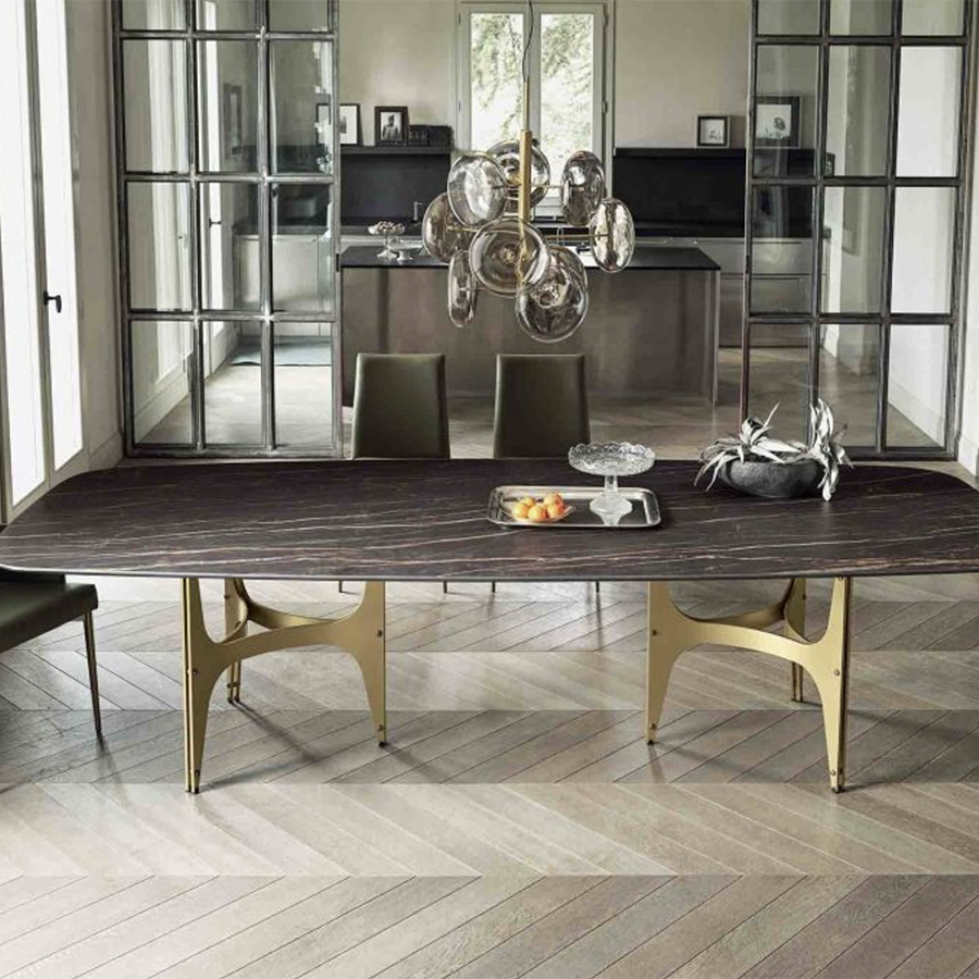 Der Tisch Universe XXL von Bontempi besticht durch sein lackiertes Stahlgestell mit dekorativen Details und einer Tischplatte, die in verschiedenen Materialien und Ausführungen erhältlich ist. Das einzigartige Gestell mit dekorativen Elementen zwischen den Beinen, die in unterschiedlichen Farben gewählt werden können, unterstreicht die besondere Optik des Tisches.