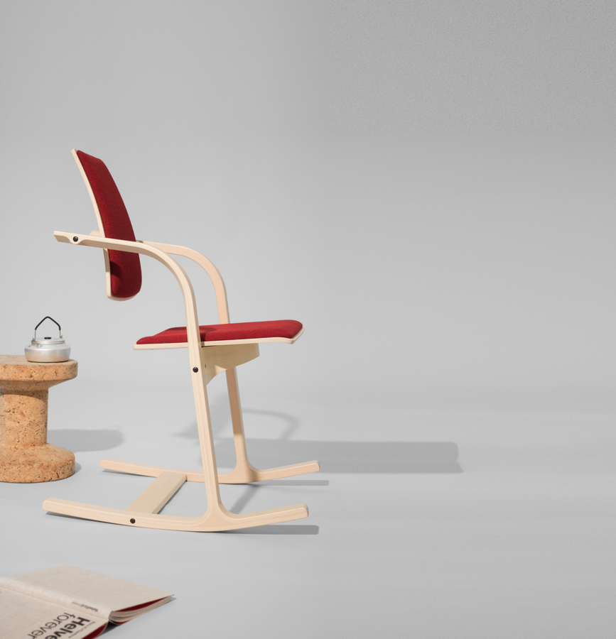 Dank der Kufen folgt der Stuhl den natürlichen Bewegungen des Körpers. Während der Arbeit behält die Wirbelsäule ihre aufrechte und dynamische Haltung und der Körper bleibt im Gleichgewicht. Diese subtile Aktivität stärkt Ihre Rumpfmuskulatur und beugt Verspannungen im Nacken und in den Schultern vor. Wenn Sie sich zurücklehnen, bieten die flexible Rückenlehne und Armlehnen Unterstützung, wenn Sie sie brauchen. Sein Design eignet sich sowohl für den Computertisch als auch für das Wohnzimmer oder den Tisch.