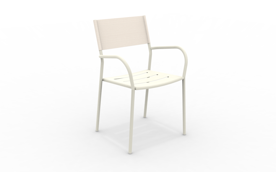 Vera-Stuhl von Vermobil. Ein schlichtes Design, das mit einer eleganten und zeitlosen Silhouette die Persönlichkeit eines Stuhls zum Ausdruck bringt. Mit seiner Rohrstruktur, der perforierten Sitzfläche, dem bequemen Sitzkissen – besonders breit und bequem – und der Stoffrückenlehne für mehr Komfort wird es durch lebendige Farbkombinationen zwischen den Materialien bereichert.