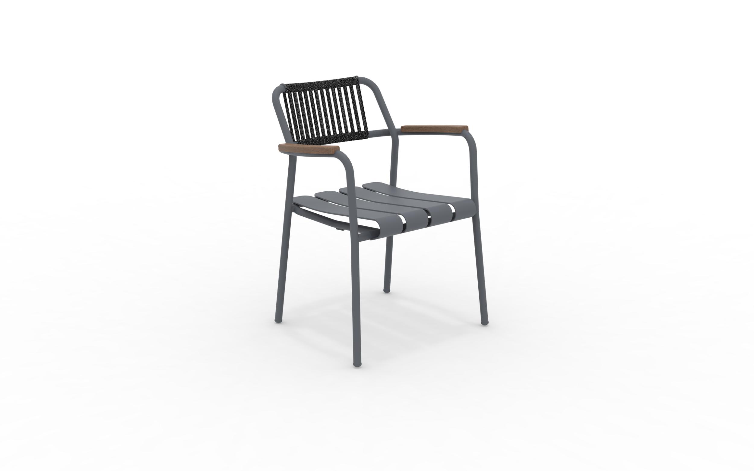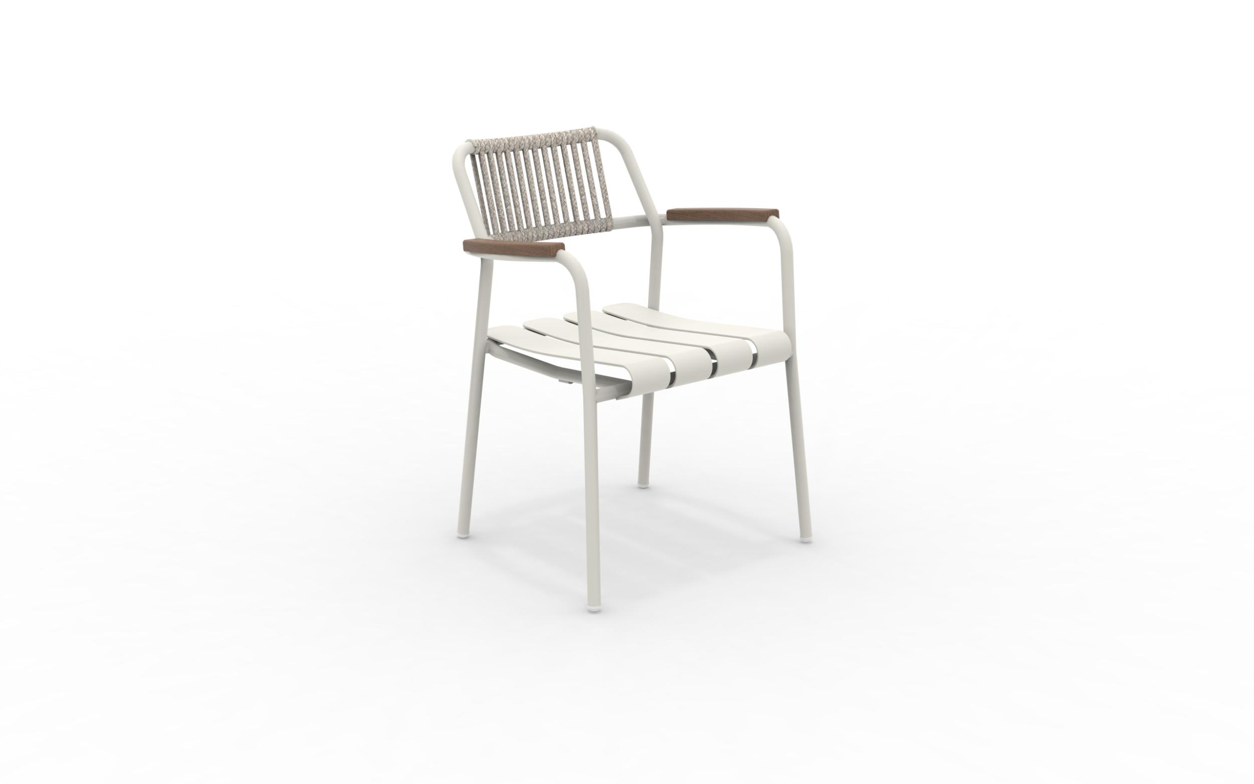 Der Verdea Rope-Sessel aus Aluminium, Seil und FSC-Teakholz an den Armlehnen von Vermobil ist ein Einrichtungsaccessoire, das sich für jeden Garten oder jedes Wohnzimmer im Freien eignet. Dieser Sessel mit schlichten und modernen Linien vereint Stil und Vielseitigkeit, da er stapelbar und in zahlreichen Farben erhältlich ist. Stapelbarer Sessel.