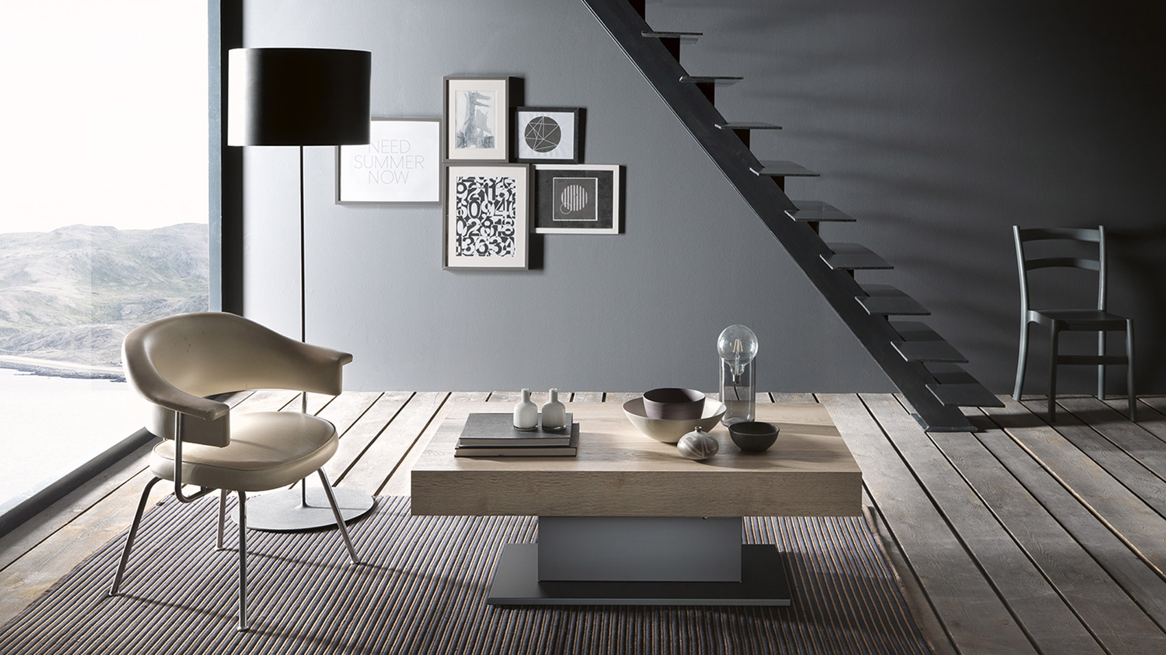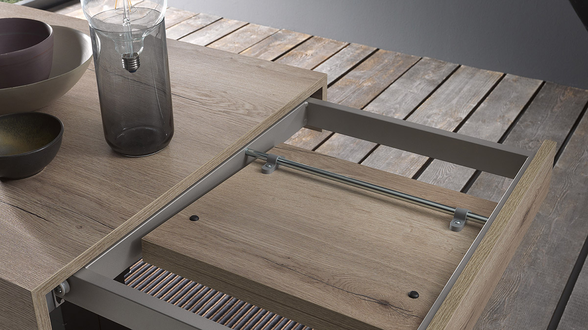 Couchtisch, umbaubar zum Esstisch, zentrale Stahlkonstruktion. Höhenverstellung per Gasdruckfeder millimetergenau von 42 cm bis 83 cm. Rechteckige Tischplatte in Melamin, lackiert, Holz- oder Mörteloptik mit zwei passenden Buchauszügen. Einziehbare Lenkrollen. Schnelle Bewegung für alle, die Wert auf Funktionalität legen, ohne auf Geschmack zu verzichten: Die Wohnzimmerversion von Ares Wing verwandelt sich im Handumdrehen in einen eleganten und ansprechenden Esstisch. Seine extreme Dynamik macht ihn perfekt für alle, die von einem Einrichtungsaccessoire höchsten Bedienkomfort erwarten.