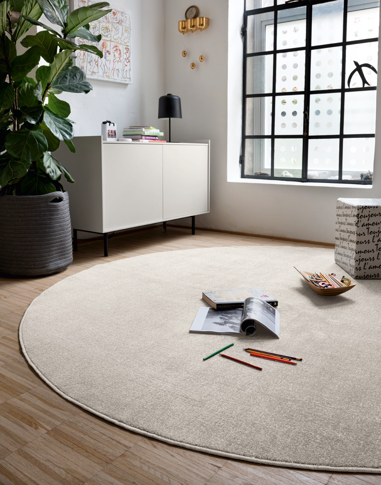 Vully-Teppich von Connubia aus recyceltem Polyester (85 %) und maschinengewebtem Polyester (15 %). Vully ist in verschiedenen Farbvarianten und in drei Größen erhältlich.