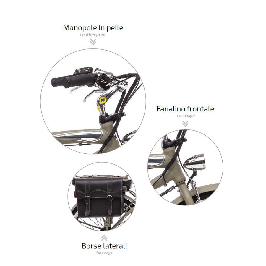World Dimension Retro Cruiser Elektrofahrrad mit Pedalassistent. Das Retro-Cruiser-Modell zeichnet sich durch ein elegantes Design und einen bequemen Rahmen mit abgerundeten Formen aus. Auf dem Sattel dieses Bikes sind Sie die Protagonisten der Straße: exklusiv und raffiniert!