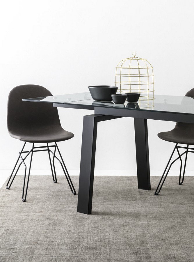 Zeffiro ausziehbarer Tisch von Connubia mit Platte aus gehärtetem Glas. Erhältlich mit Metallgestell in verschiedenen Ausführungen. Der Tisch ist dank zweier einzeln zu öffnender Seitenverlängerungen, die auf Aluminiumführungen in der gleichen Farbe wie die Beine sitzen, ausziehbar. Dieser Tisch mit schlichtem Design verleiht Ihrer Küche einen Hauch von Eleganz.