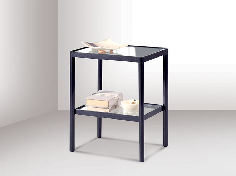 Nachttisch ZEUS von Pama. Betten aus Schmiedeeisen und Glasplatte