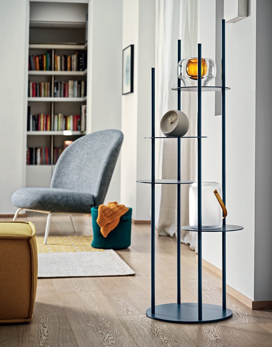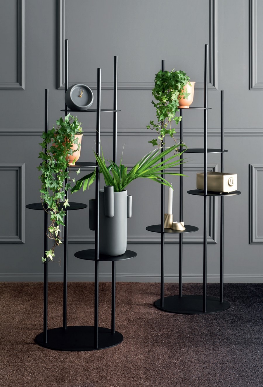Totem portaoggetti con ripiani di forma circolare organizzati su più livelli, Circles è realizzato in metallo verniciato goffrato. Una soluzione originale per vivacizzare i piccoli spazi, ma anche per organizzare le piante, creando un rigoglioso angolo di natura in casa.
