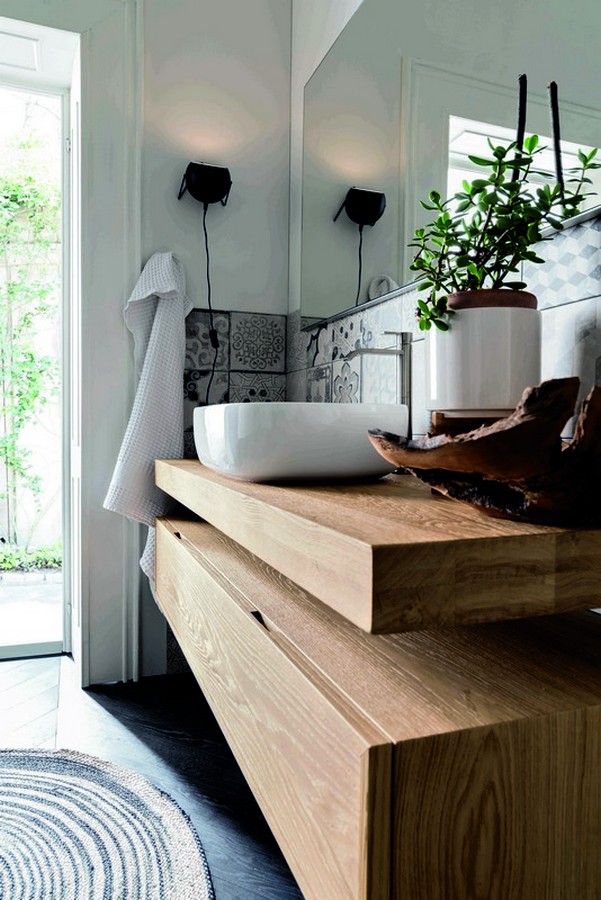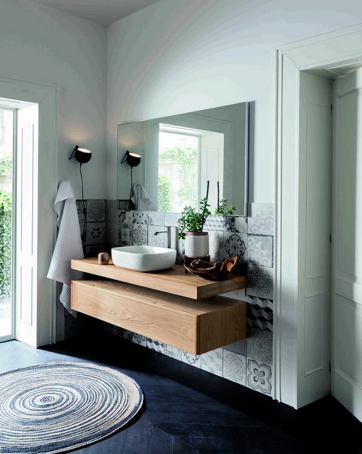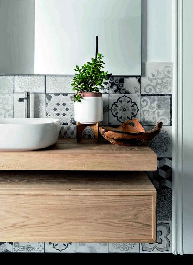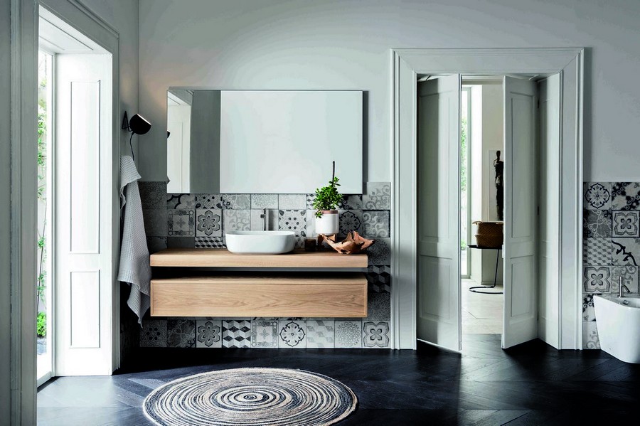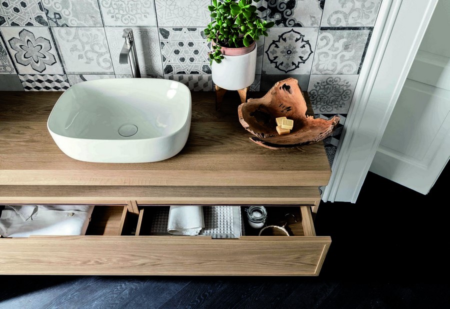 Composizione bagno Teddy #1 della linea Ecobath di Altacorte. Stupenda composizione di mobili da bagno di Altacorte in legno finitura Rovere Alaska per rendere il vostro bagno unico nel suo genere.