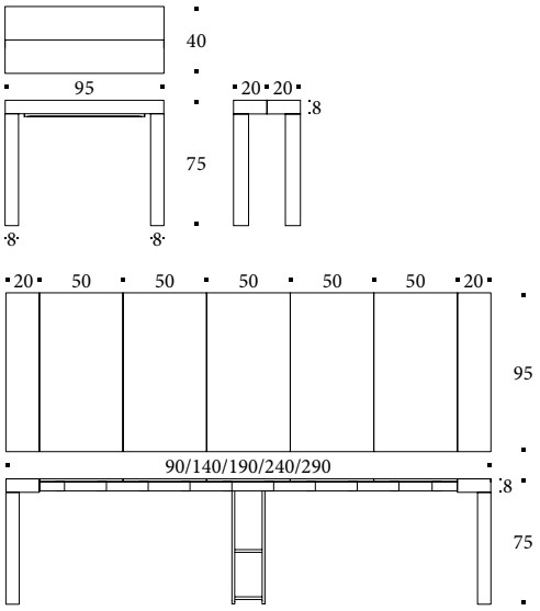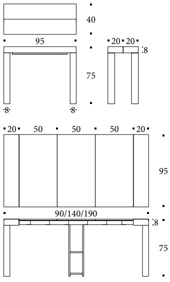 Consolle Combi di Altacom estensibile in nobilitato, meccanismo telescopico in alluminio, 3 allunghe. Gambe centrali di supporto. Disponibile in due dimensioni.