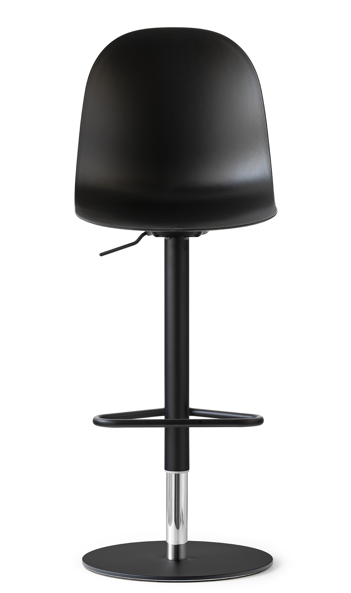 ACADEMY-Hocker mit Gasmetallstruktur. Durch die vielfältigen Kombinationsmöglichkeiten der Gestelle und Sitze dieses Modells können wir zahlreiche Alternativen anbieten, um allen unterschiedlichen ästhetischen und funktionalen Anforderungen gerecht zu werden. Hocker mit Gasdruckfeder und Basis mit Ballast. Drehhocker.