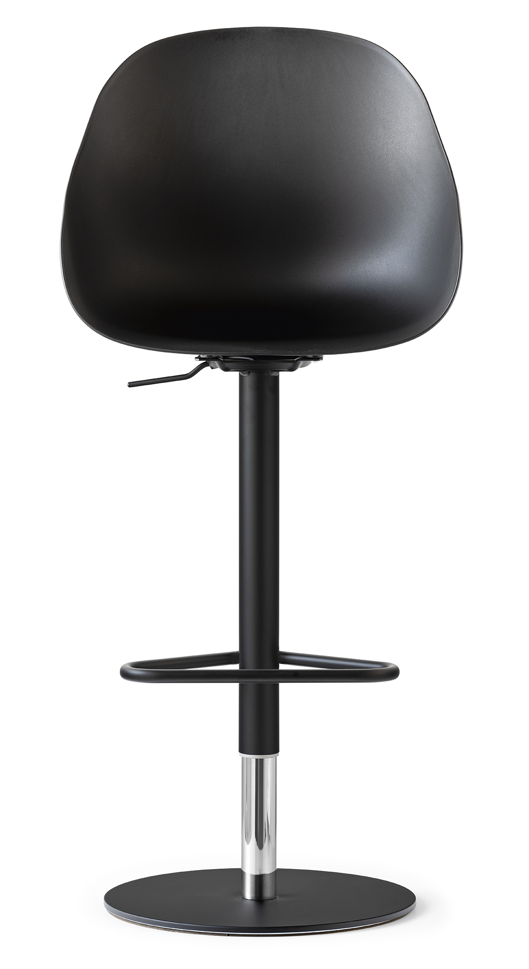 Durch die Gasdruckfeder lässt sich die Höhe ganz einfach anpassen, was ihn ideal für Umgebungen wie Küchen oder Bars macht. Die elegante Struktur und Vielseitigkeit dieses Hockers machen ihn zu einer praktischen und raffinierten Wahl für alle, die Komfort und Stil in einer einzigen Lösung suchen. Drehhocker mit Gasdruckfeder und beschwerter Basis.