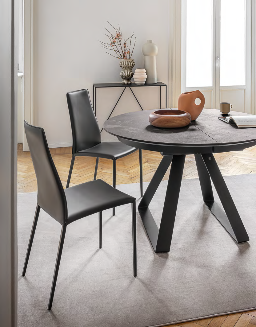 Ein Stuhl, der Ihrem Essbereich elegante Persönlichkeit verleiht. Wählen Sie das Finish, das Ihrem Geschmack am besten entspricht.