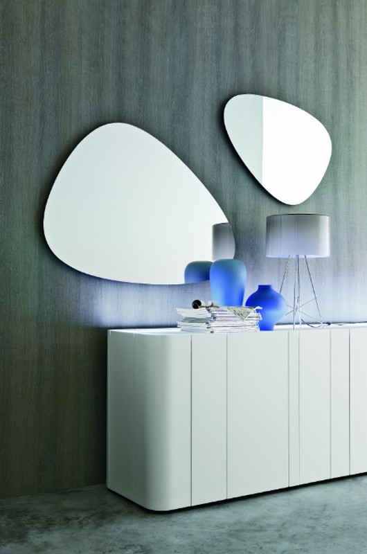 Stone Mirror von Tonin Casa ist ein geformter Spiegel in Bronze- oder Silberoptik in drei verschiedenen Größen. Das Design von Stone erinnert genau an das eines Steins, von einem perfekten Zenitpunkt aus gesehen: wie ein Dreieck mit extrem abgerundeten Ecken. Stein scheint eine weitere Dimension auf sich zu ziehen, die der Reflexion, die er in Ihre Räume bringen möchte.