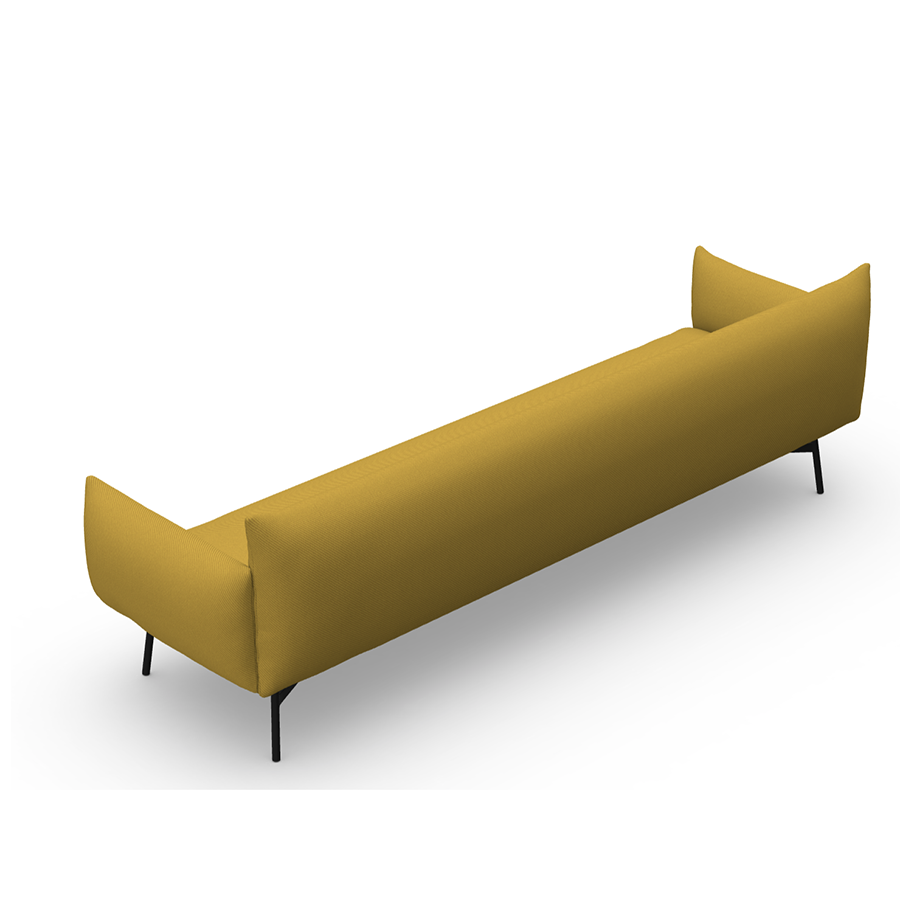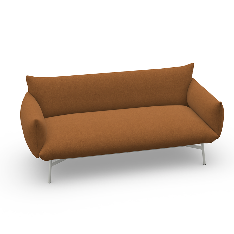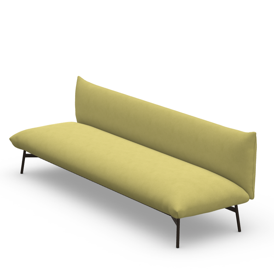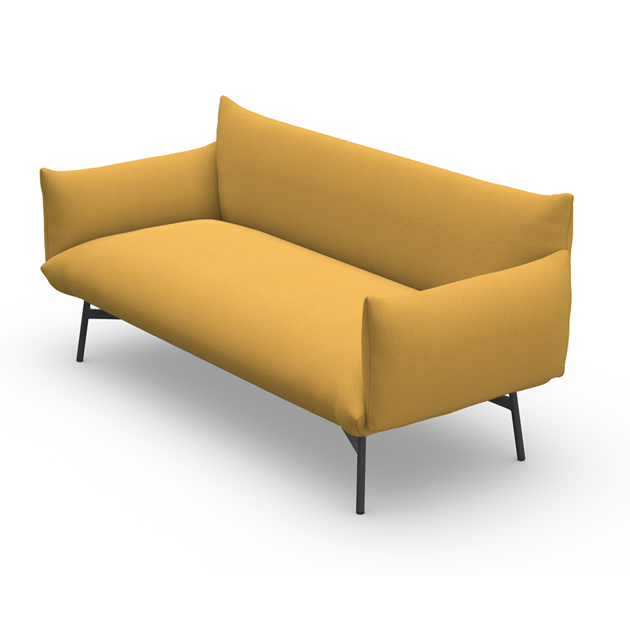 Zwei- oder Dreisitzer-Sofa mit lackierten Metallbeinen, Sitz und Rückenlehne mit Stoff bezogen. Mit oder ohne Armlehnen erhältlich.