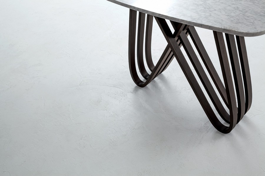 Arpa Festkonsole von Tonin Casa mit gebogener Holzstruktur und Platte aus gehärtetem Glas, Marmor oder Porzellan, das Maximum an Design für eine Ergänzung, die den Unterschied macht. Der Stil des Arpa-Tisches, die Verflechtung der gebogenen Holzbasis und die angenehme Rundheit der Platte werden in dieser Konsolenversion nach Möglichkeit noch deutlicher.