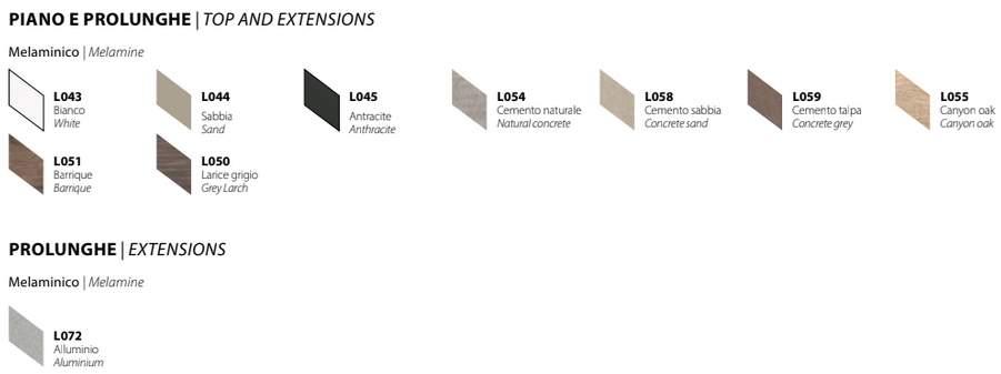 Aster-Tisch von Ingenia Bontempi, ausziehbarer Tisch mit rechteckiger Platte aus verschiedenen Materialien, dreieckiges Bein aus lackiertem Stahl in verschiedenen Ausführungen