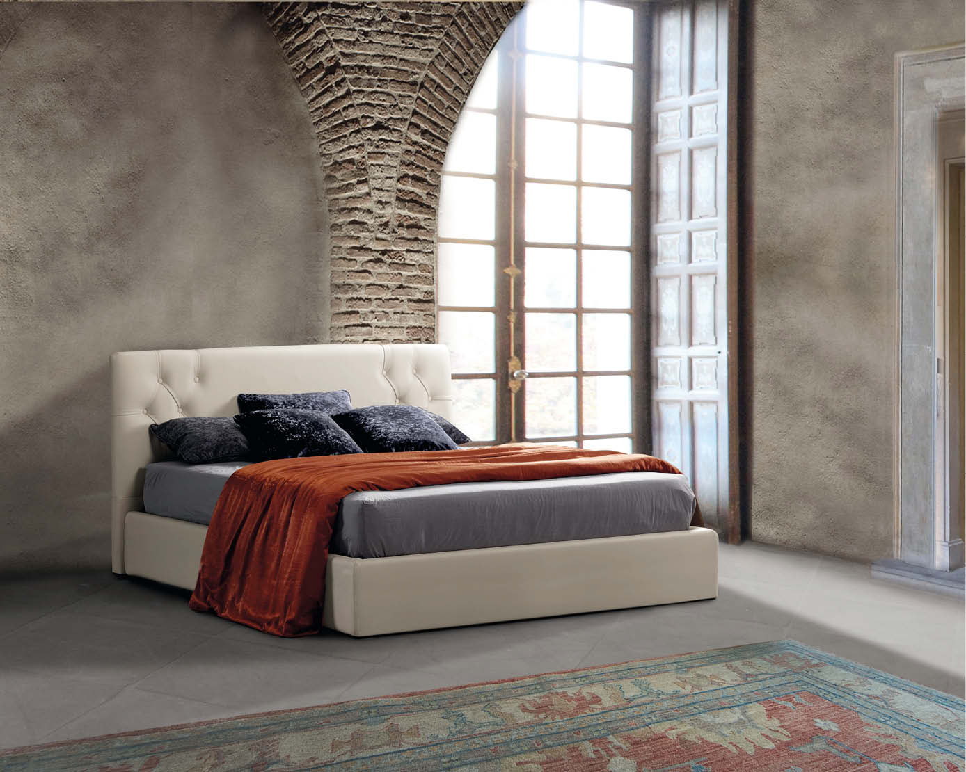 Doppelbett Athena von Lettissimi, klassisch, wertvoll und wichtig, ein zeitloser Klassiker für alle, die nie auf Stil verzichten. Erhältlich in zwei Versionen: mit Bettrahmen H. 14 und mit Bettrahmen H. 22. Große Auswahl an Stoffen und Öko-Leder für die Bezüge und Möglichkeit der Version mit Container mit zwei verschiedenen Öffnungsarten: Standard oder patentierter Doppellift.
