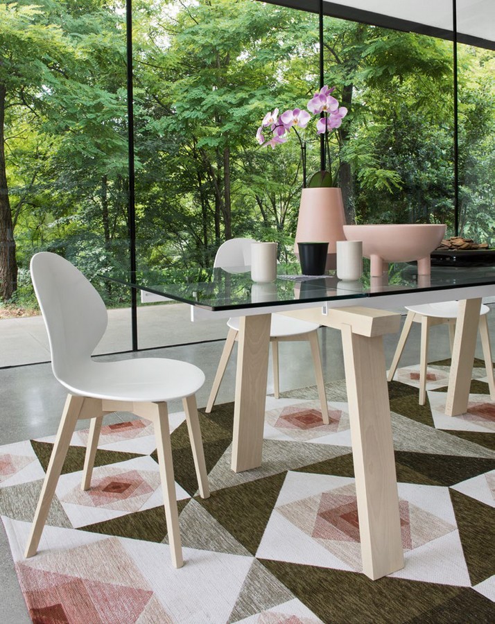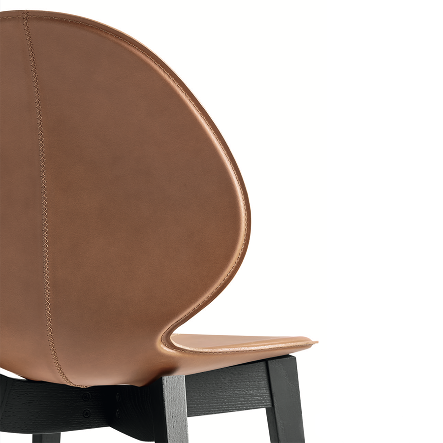 Die Form der Sitzfläche, die dank der Mittelrippe an die Morphologie eines Basilikumblattes erinnert, wird gleichzeitig zum strukturellen und dekorativen Thema des Produkts.