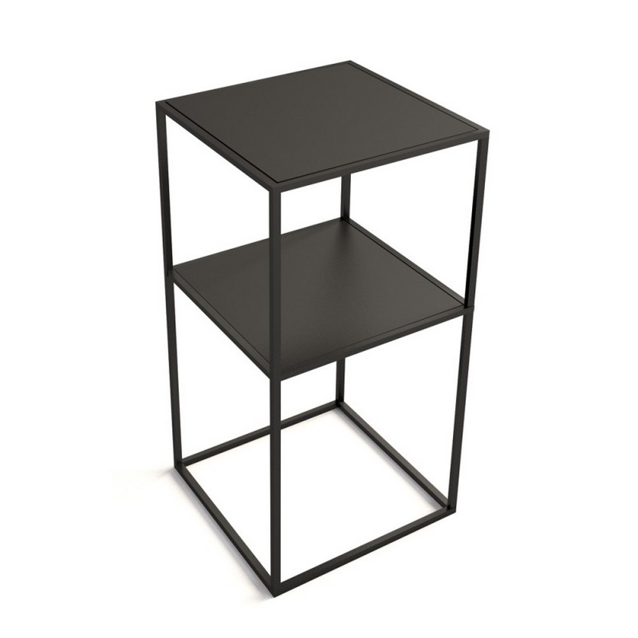 Beistelltisch aus der Passepartout-Kollektion aus 10 x 10 mm dickem Metall mit anthrazitfarbener Epoxidfarbe. Side zeichnet sich durch ein schlichtes Design und leichte Linien mit integrierten Regalen aus, die ohne sichtbares Befestigungssystem montiert werden.