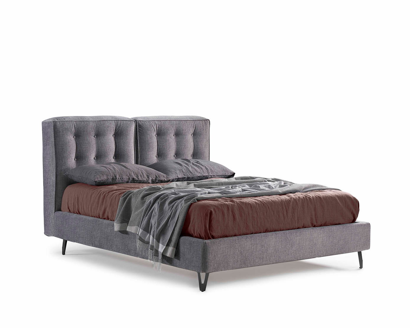 Modernes und elegantes Bett Abate von Lettissimi. Erhältlich in drei Größen: Einzelbett, Queensize-Bett, Doppelbett. Erhältlich in drei Varianten: mit Bettrahmen H. 7, mit Bettrahmen H. 14, mit Bettrahmen H. 22. Große Auswahl an Stoffen und Öko-Leder für die Polsterung und Möglichkeit der Version mit Container mit zwei verschiedenen Öffnungsarten: Standard oder patentierter Doppellift.