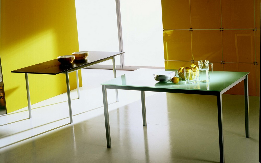 Bios ist ein fester Tisch, der sich an jede häusliche Umgebung oder jeden öffentlichen Ort wie eine Bar oder ein Restaurant anpasst. Der feste Tisch ist in der quadratischen oder rechteckigen Version, schlicht und linear, erhältlich. Bios hat eine lackierte Stahlstruktur in verschiedenen Ausführungen und die Tischplatte kann zwischen Glas oder Melamin gewählt werden.