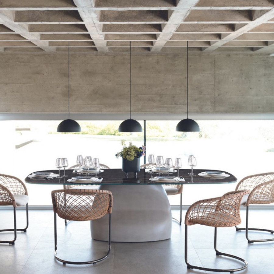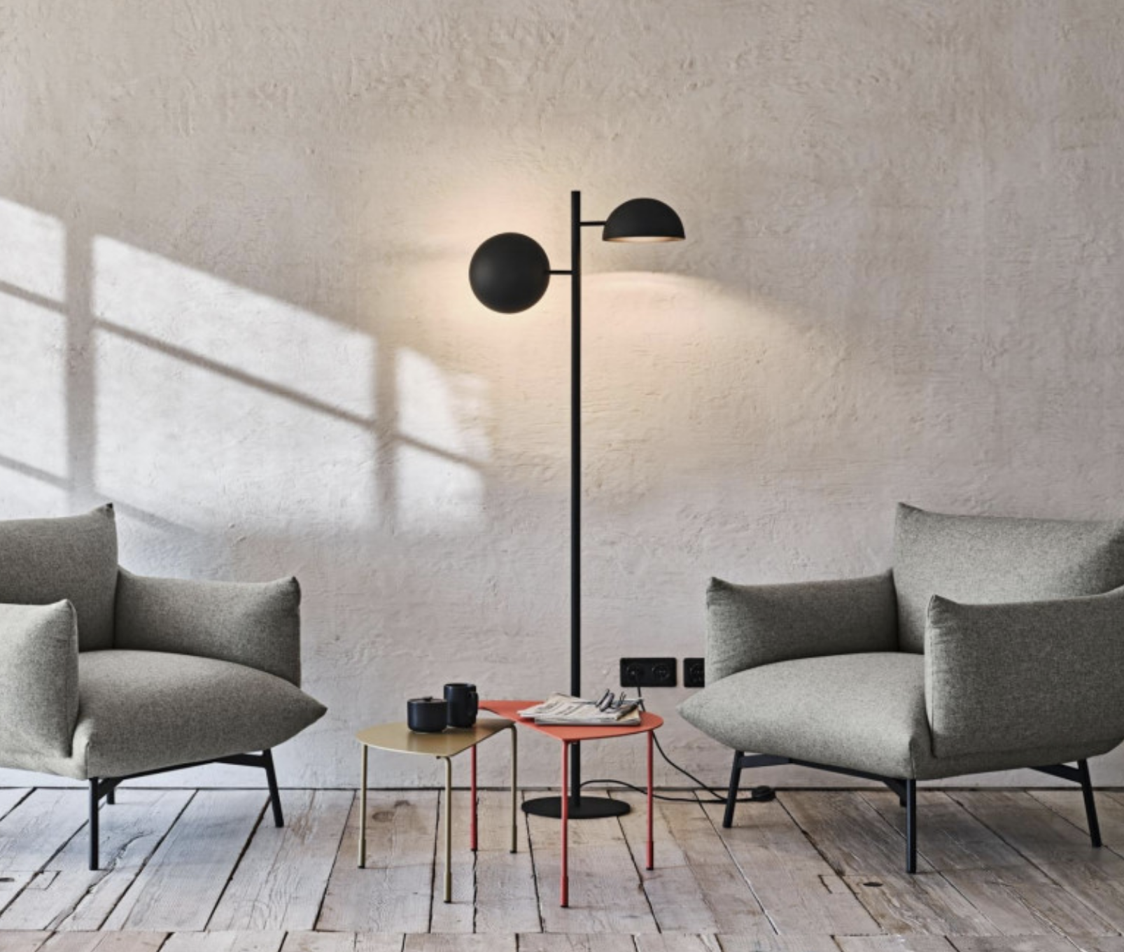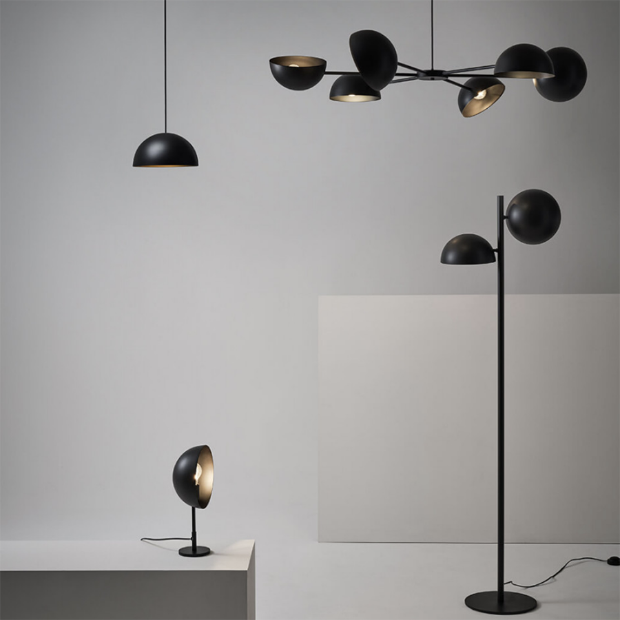 Charlotte , entworfen von dem Designer Tomas Dalla Torre, ist als Steh-, Tisch- und Einzelpendelleuchte oder als sechsarmiger Kronleuchter erhältlich. Charlotte ist eine Kollektion, die sich durch große Vielseitigkeit auszeichnet. Inspiriert von der Bauhaus-Strömung bietet es maximal vereinfachte, fast abstrakte Geometrien, gut lesbar im Verhältnis zum Raum.