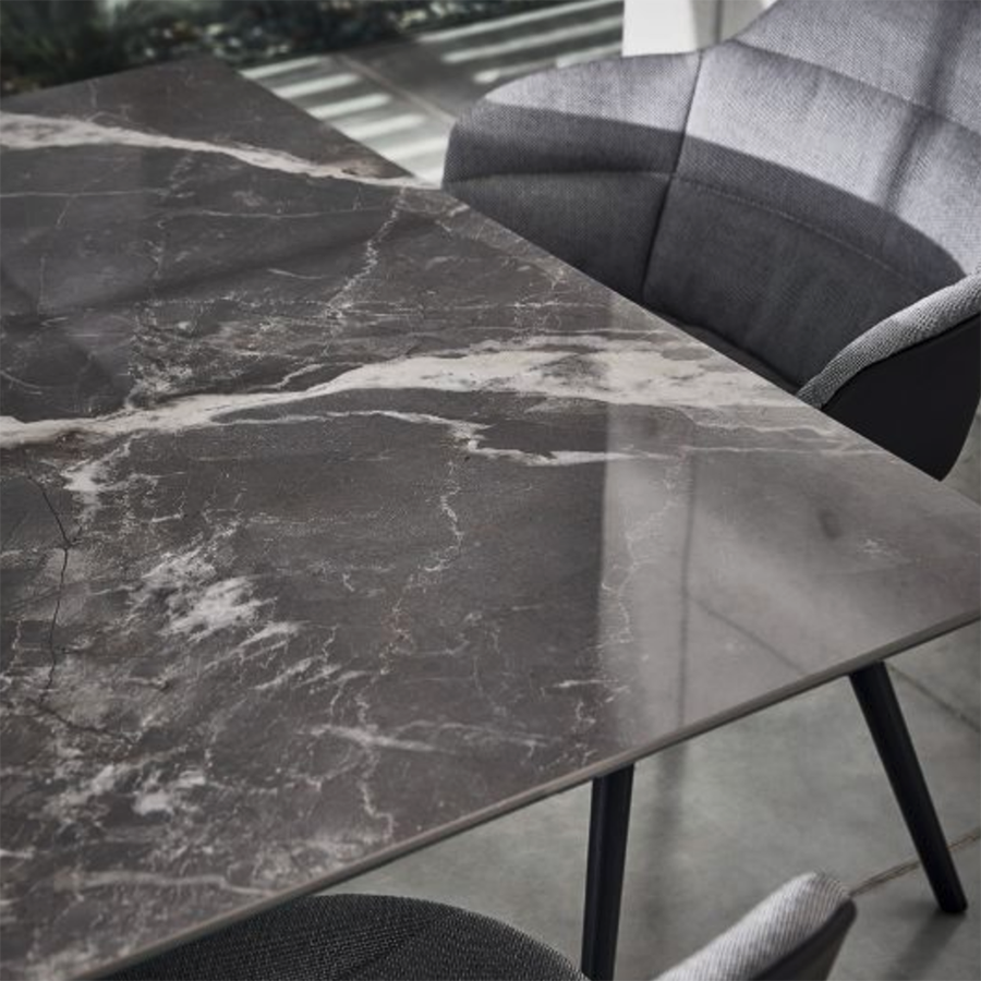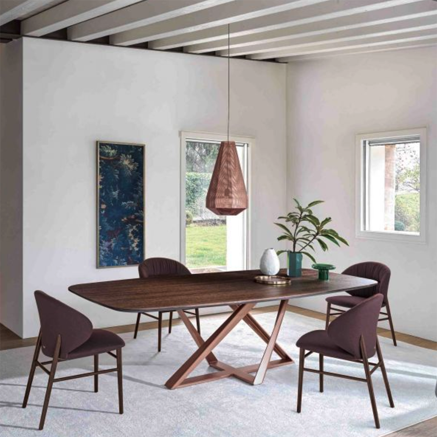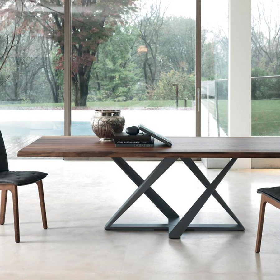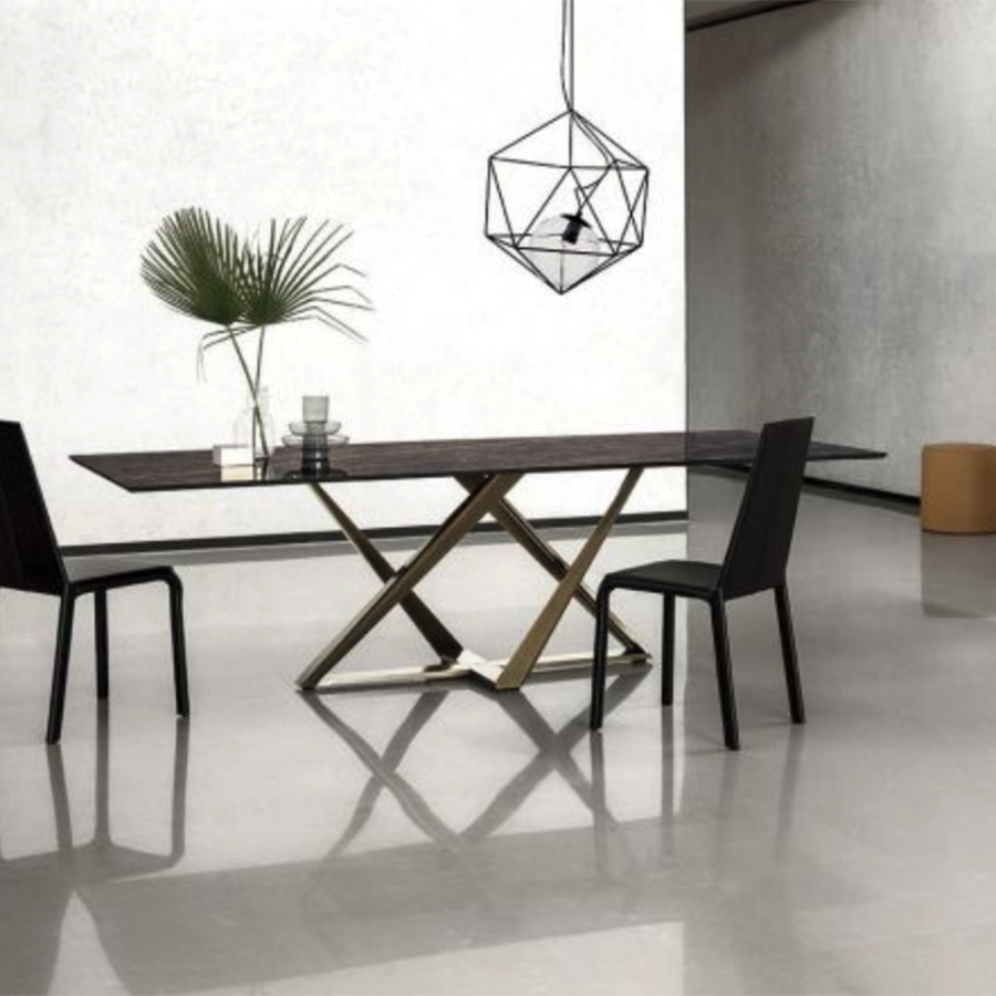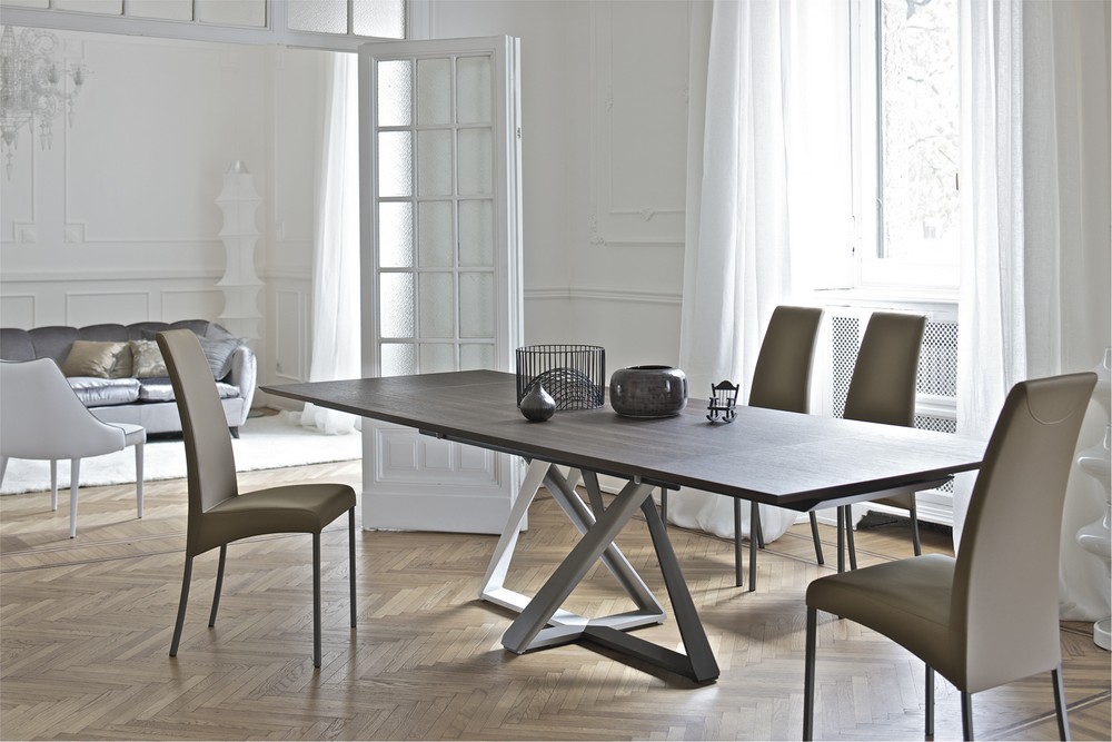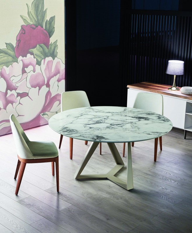 Der feststehende und ausziehbare Tisch Bontempi Millennium zeichnet sich durch seine markante, futuristische Struktur aus, die eine harmonische Dynamik geometrischer Formen erzeugt. Das Tischgestell ist in einfarbig lackiertem Stahl oder in der mehrfarbigen Ausführung Elegant erhältlich. Die Tischplatte ist in Holz, lackiertem Holz, Superkeramik, Supermarmor oder Glas und in verschiedenen Oberflächenausführungen verfügbar.