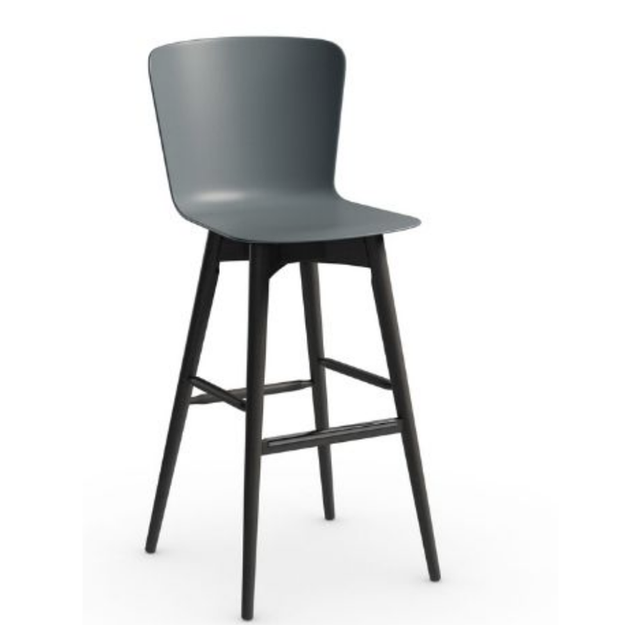Calla S/P LR Hocker mit Holzsockel und Polypropylen- oder gepolsterter Schale.