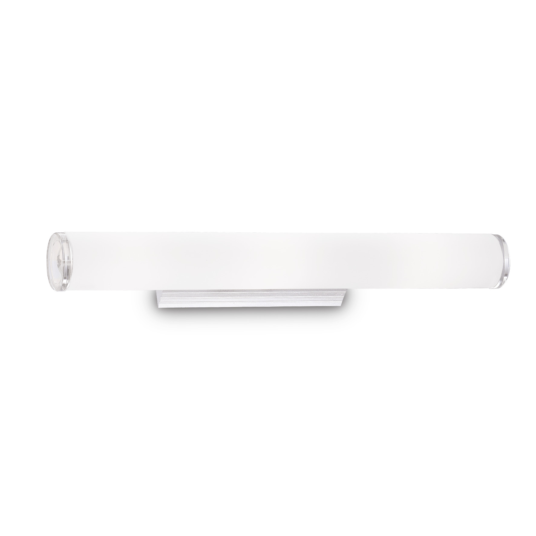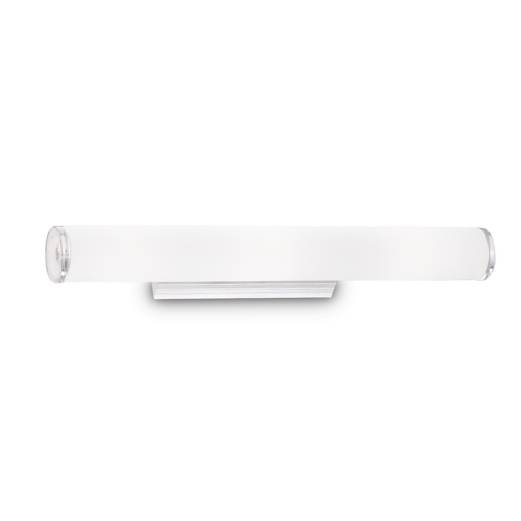 CAMERINO AP4 Wandleuchte von Ideal Lux mit Aluminiumsockel. Diffusor aus geblasenem und geätztem weißem Glas, an den Enden durch Scheiben aus transparentem Acrylmaterial verschlossen. Leuchtmittel ausgeschlossen.