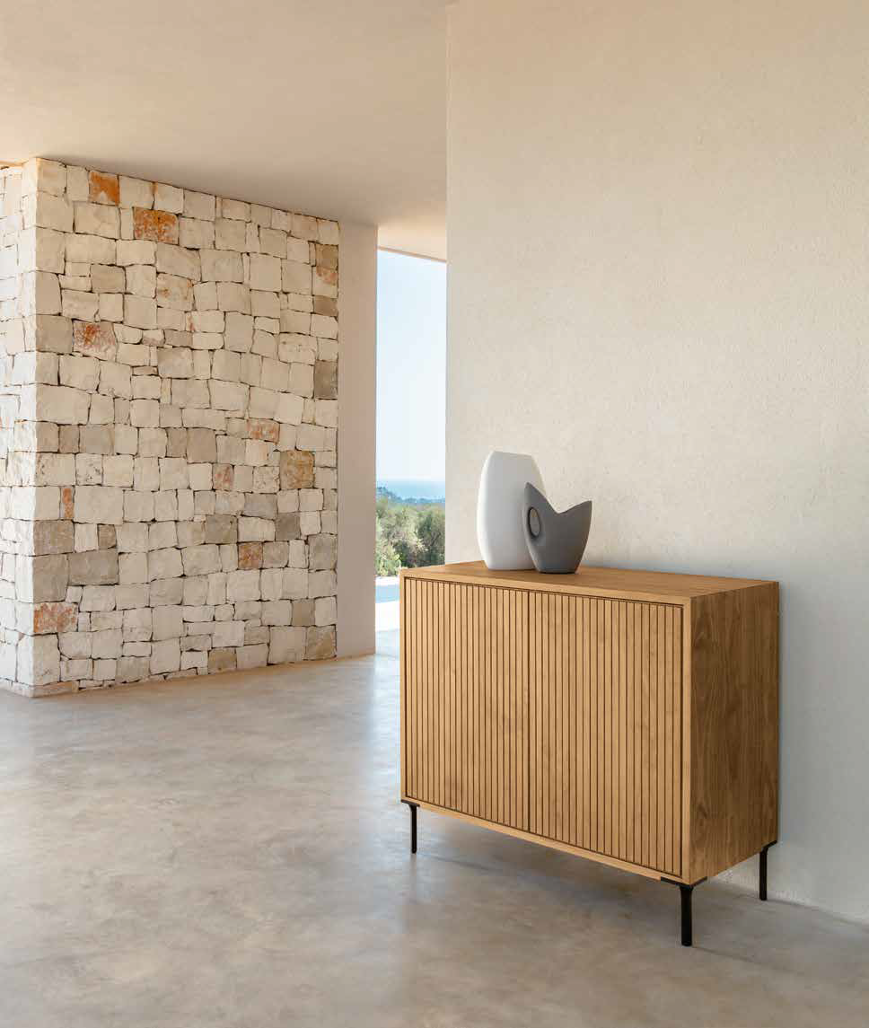 Das Sideboard Chora von Talenti ist in drei Größen erhältlich, aus Accoya-Holz gefertigt und in zwei Farben verfügbar.
