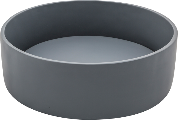 Quadratisches Aufsatzwaschbecken aus Harz, Mineralpulvern und Pigmenten mit Ablaufabdeckplatte. Kleine Unvollkommenheiten sind ein Zeichen für eine rein handwerkliche Verarbeitung. Erhältlich in Weiß und Elefantengrau.