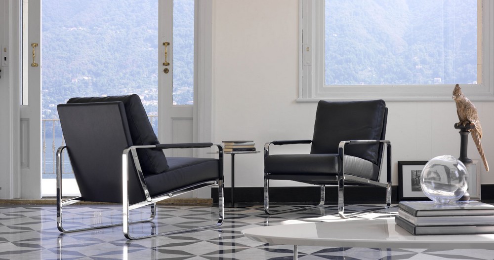Clarissa ist ein Sessel, der sich durch ein modernes, elegantes und geradliniges Design auszeichnet. Die Struktur besteht vollständig aus lackiertem Stahl. Der Sitz besteht aus zwei großen Kissen, gepolstert und mit Kunstleder, Leder oder Stoff bezogen