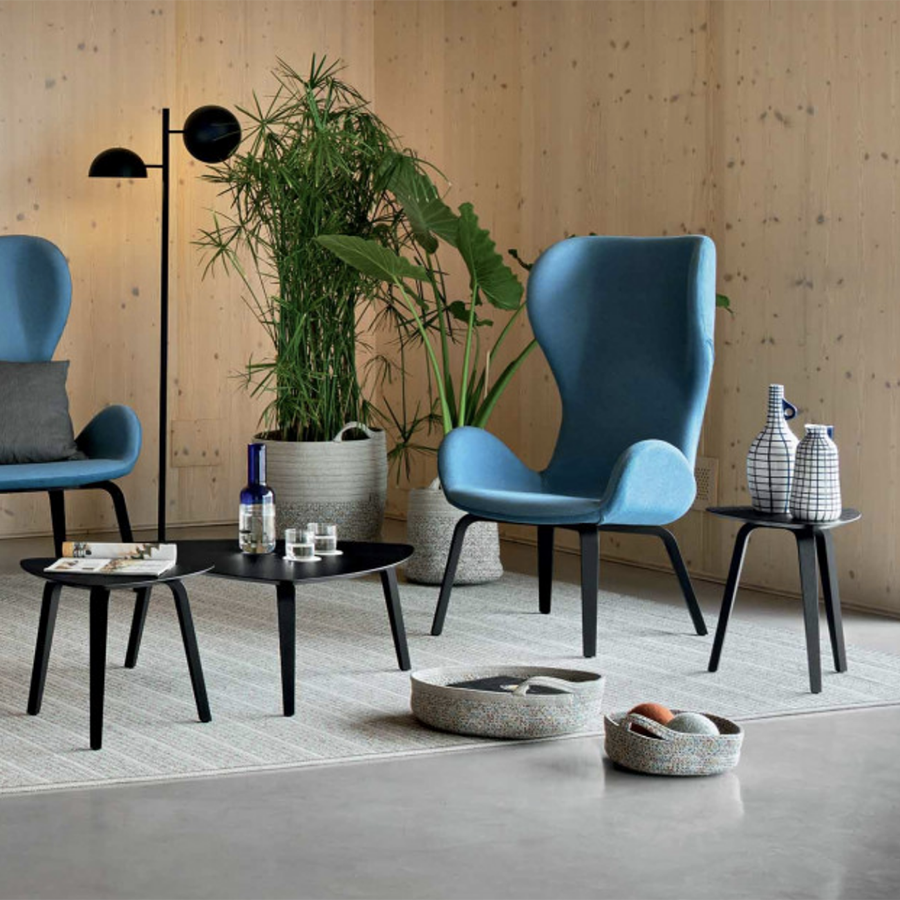 Dalia Couchtisch mit Holzsockel und Tischplatte, erhältlich in drei verschiedenen Größen: