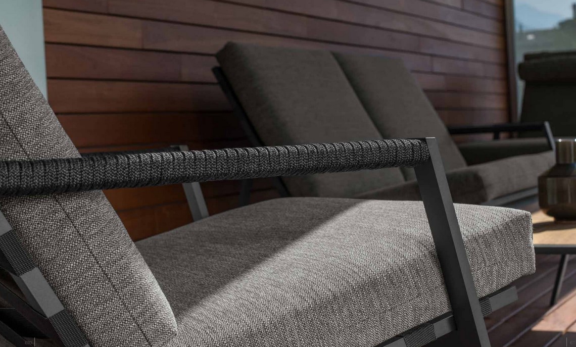 • Graphitfarben lackiertes Aluminium / Dunkelgraue elastische Kunststoffgurte / Dunkelgrauer Kissenbezug / Dunkelgraues Kunststoffseil - A14 / B1 / C17 / R1