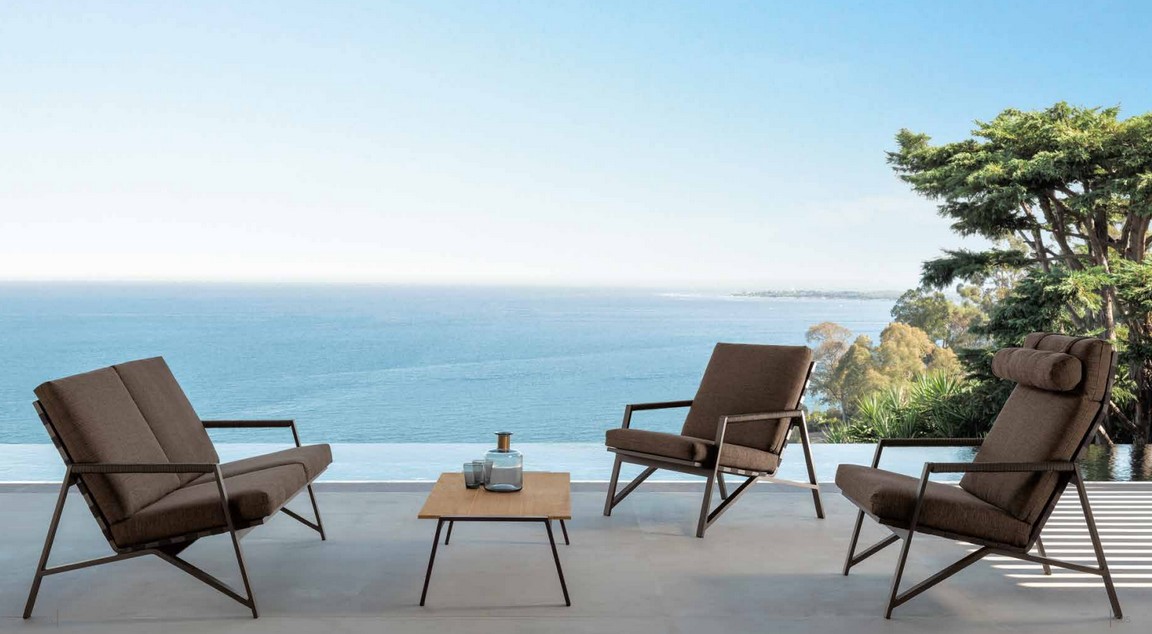 Der Outdoor-Living-Sessel aus der Cottage-Kollektion erinnert an die Atmosphäre des Wilden Westens, wo großzügig dimensionierte Sitzmöbel mit hohen Rückenlehnen die Veranden von Bauernhöfen und Ranches bevölkerten.