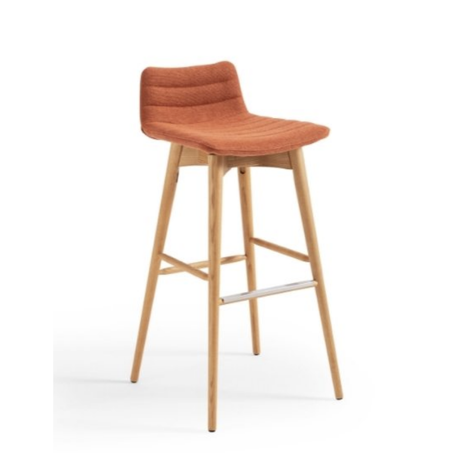 Beziehen Sie den Hocker mit einem Untergestell aus gebeiztem Eschenholz. Sitzfläche mit Stoff, Leder oder Kunstleder bezogen.
