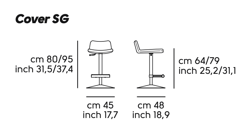 Cover SG TS Hocker aus drehbarem und verstellbarem Metall mit Stoff- oder Lederbezug