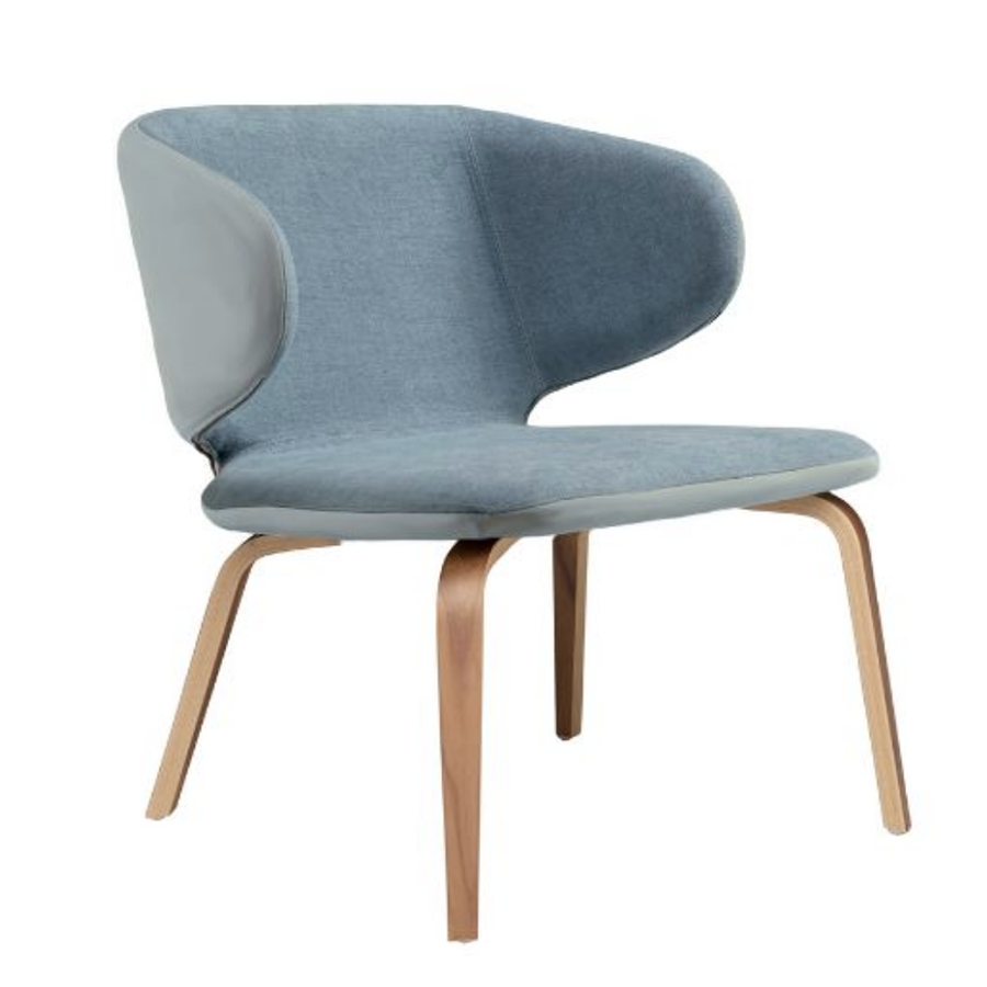 Wrap Wartestuhl mit vierbeinigem Holzgestell.