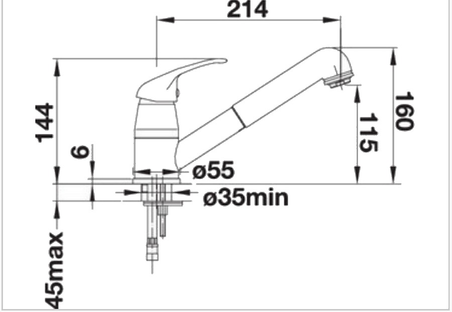 Blanco Wasserhahnmischer Daras S Mischer mit SILGRANIT-Finish in allen Farben erhältlich. Mischer mit 80 ° drehbarem Auslauf und ausziehbarer Dusche, um das Befüllen besonders sperriger Gläser oder Behälter zu erleichtern. Ausgestattet mit 350 mm flexiblen Schläuchen mit ⅜ '' Mutter zur einfachen Installation, patentiertem Strahlbrecher zur optimalen Reduzierung von Kalkablagerungen, Verstärkungsgegenplatte für mehr Stabilität und Rückschlagventil nach EN-1717.