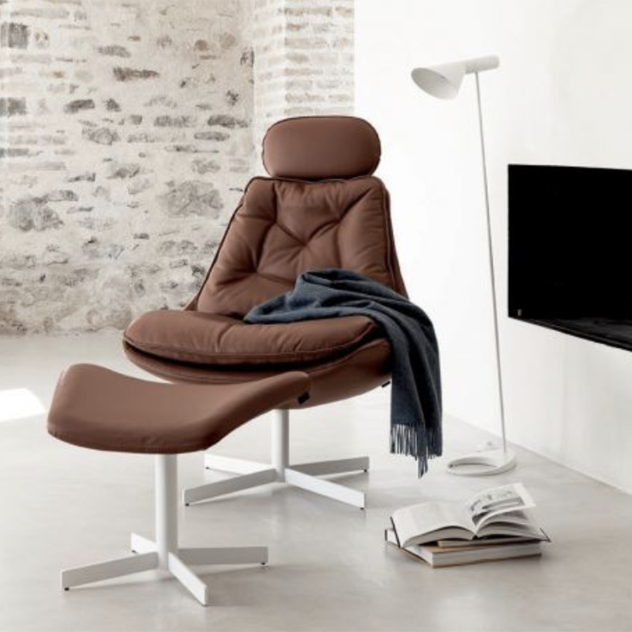 Es ist möglich, den Daya-Sessel mit Kopfstütze und/oder Hocker zu haben.