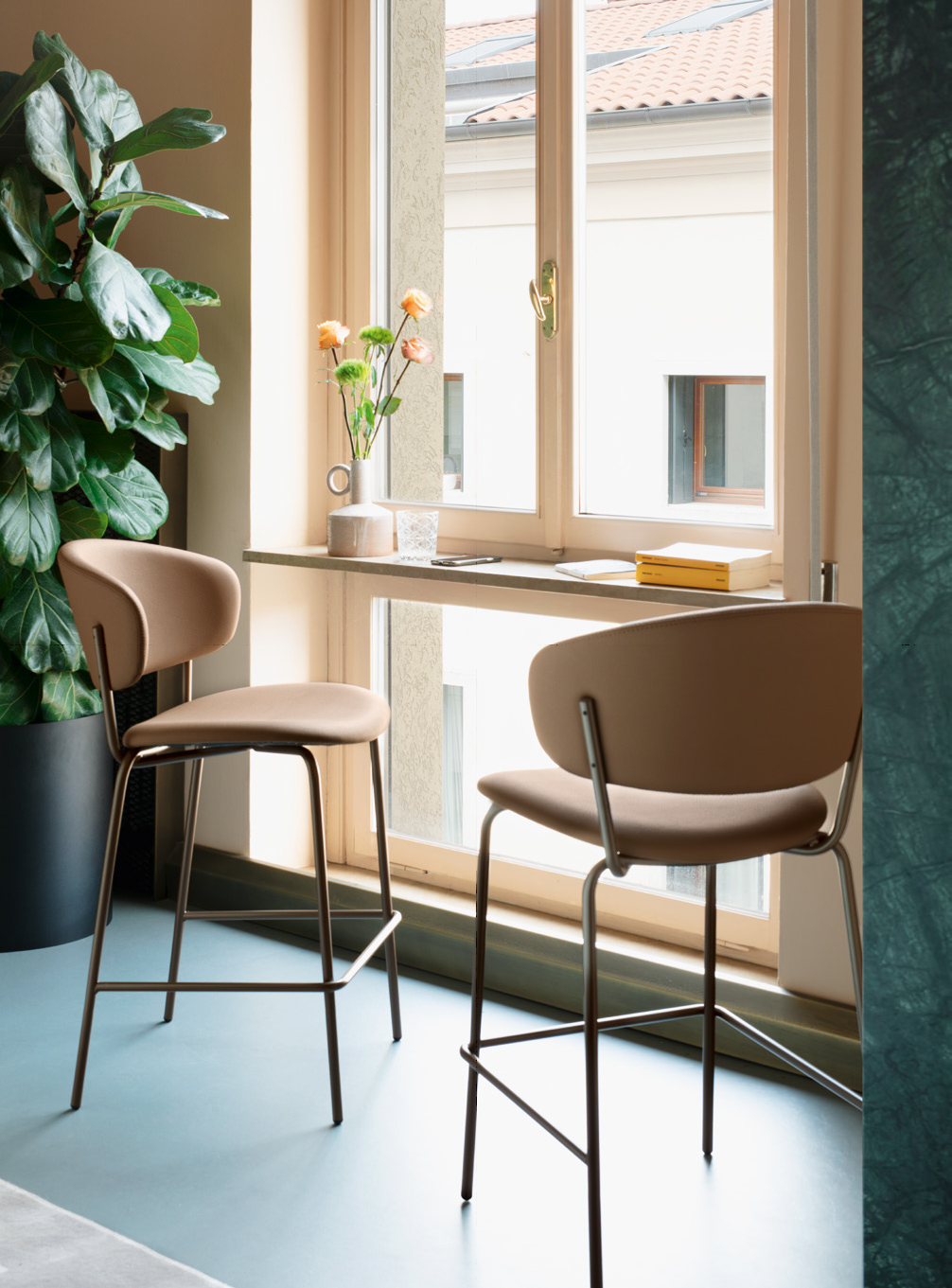 In dieser neuen Version wird der Desy-Hocker durch noch größeren Komfort bereichert, da die Rückenlehne bis zur Sitzfläche reicht, den Körper elegant umhüllt und hohen Halt bietet. Die faszinierende Überlappung der Rohre, aus denen die Struktur besteht, und die weichen Formen der Schalen bleiben unverändert und bewahren die raffinierte Harmonie, die an den Stil der 50er Jahre erinnert. Einladend und komfortabel fügt sich Desy perfekt in jeden Kontext ein.