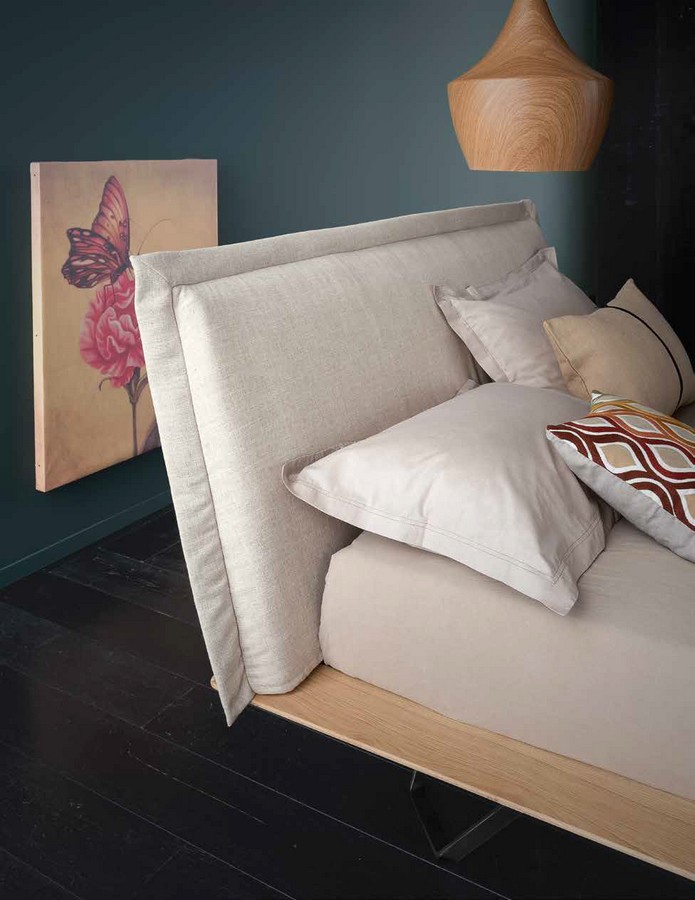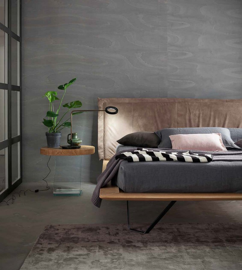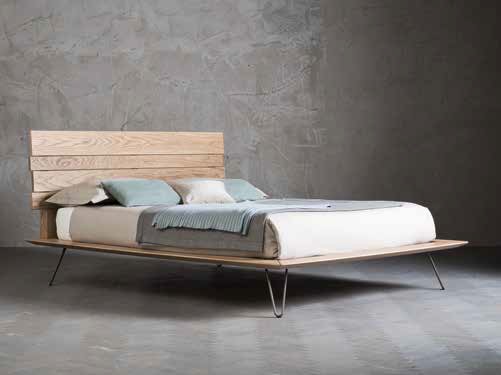Die Struktur des Bettrahmens besteht aus massiver europäischer Eiche mit einem Querschnitt von 150 x 40 mm, auf der die Strukturbasis mit Metallrahmen und Birkenlatten befestigt ist. Das hölzerne Kopfteil besteht aus massiven europäischen Eichenholzbrettern. Das gepolsterte Kopfteil hat einen inneren Kern aus Buchensperrholz, der mit Schaumstoff und Polyesterflocken geformt ist und mit abnehmbarem Stoff, Leder oder Kunstleder überzogen ist. Bei der Lederversion verfügt der Bezug über 4 vertikale Nähte. Vinylklebstoffe und Harnstoffharze auf Wasserbasis, die den UNI-EEC-Vorschriften entsprechen. Der Poliedro-Fuß besteht aus 50/10 dickem gebeiztem Blech und einer 40x10 gebogenen Laminatplatte. Der Trapezio-Fuß besteht aus einem Metallrohrprofil. 80x30. Der V-förmige Fuß besteht aus 50/10 dickem gebeiztem Blech und 12 mm gebogenem Rundeisen. Alle Füße haben eine pulverbeschichtete Oberfläche mit Eisenarbeiten im Industrie-Stil.