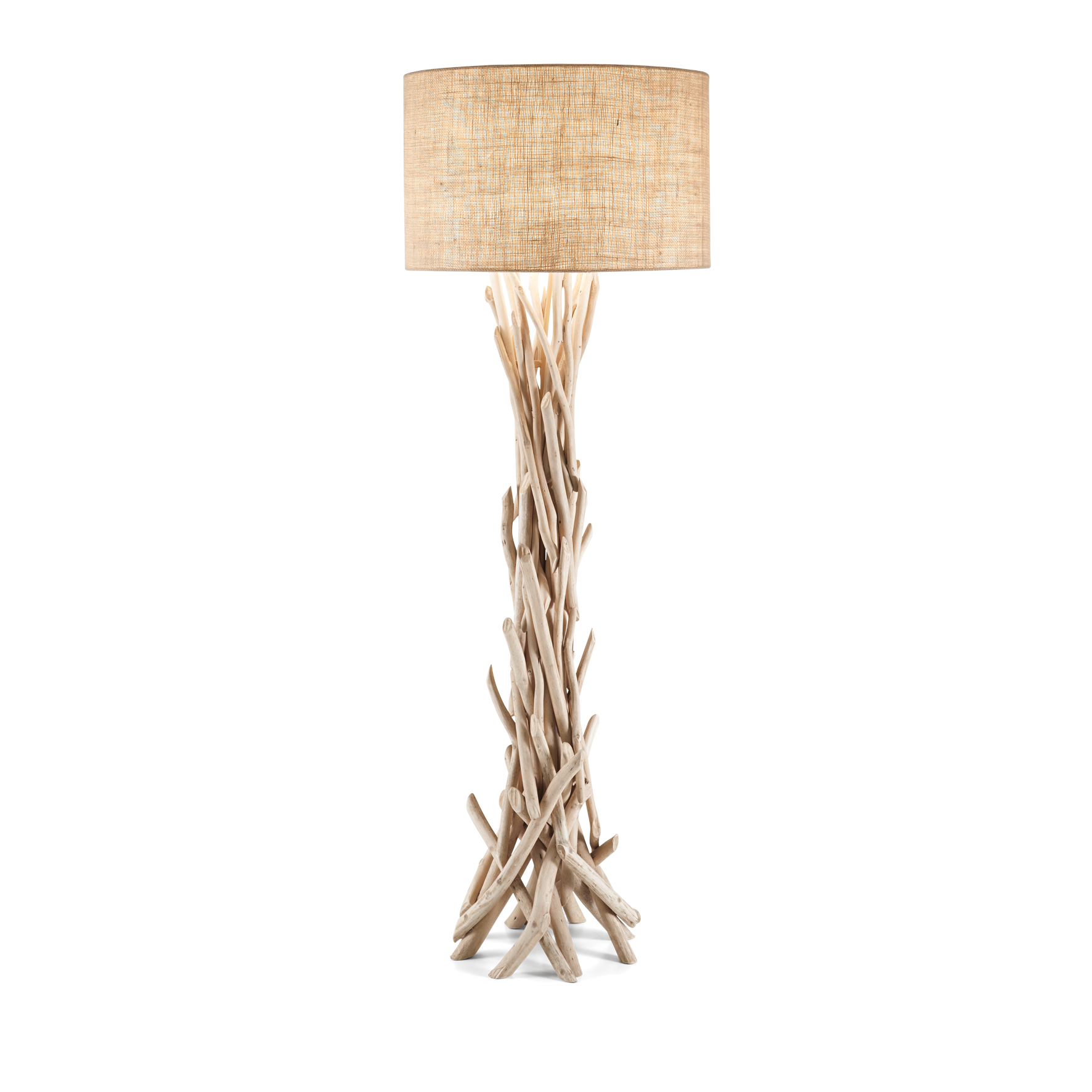 DRIFTWOOD PT1 Stehleuchte von Ideal Lux mit Metallgestell. Dekorative Elemente mit Naturholzzweigen. Diffusor aus PVC-Folie mit Canvas-Stoff bezogen. Glühbirne ausgeschlossen. Lampe mit integriertem Schalter.
