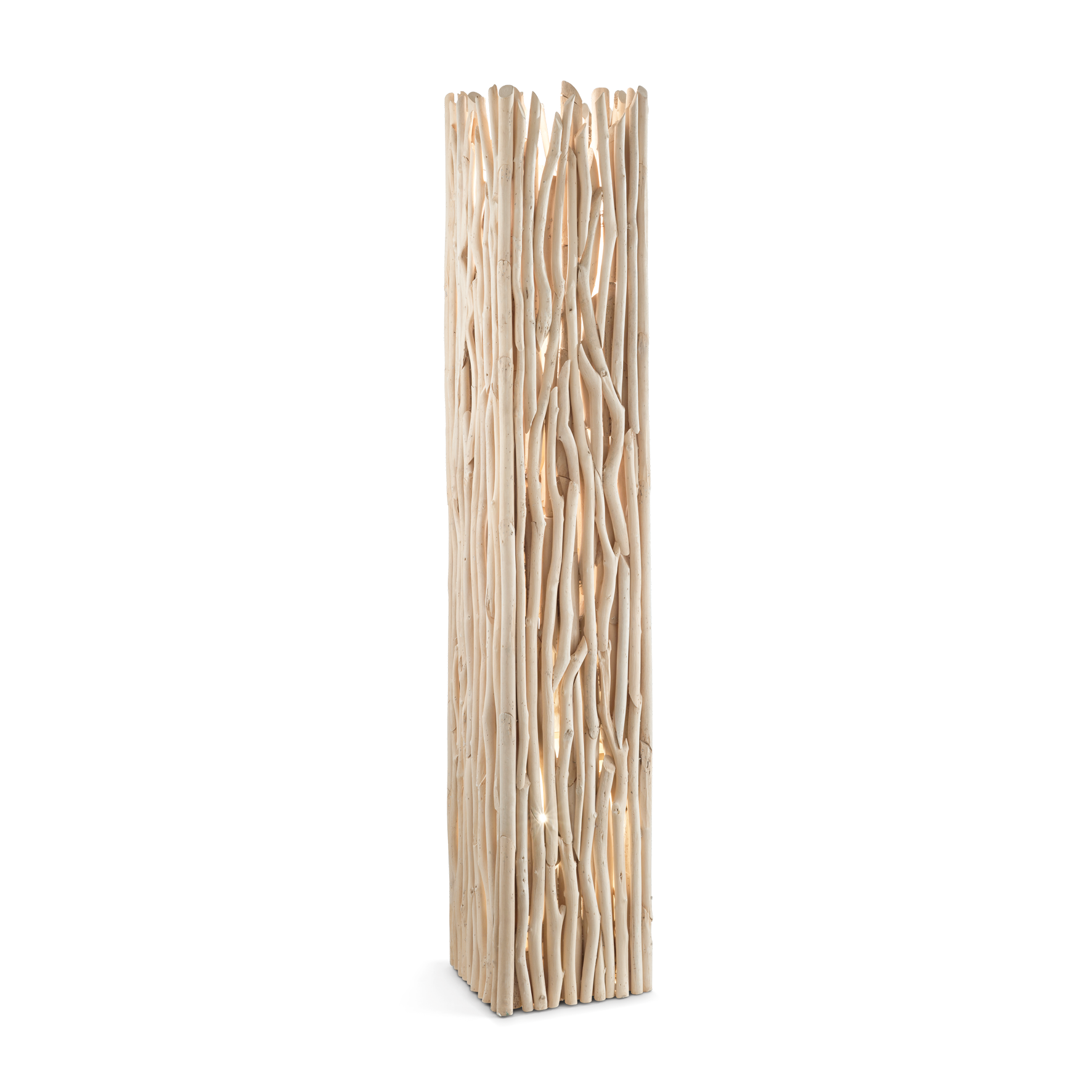 DRIFTWOOD PT2 Stehleuchte von Ideal Lux mit Metallgestell. Dekorative Elemente mit Naturholzzweigen. Diffusor aus PVC-Folie mit Canvas-Stoff bezogen. Leuchtmittel ausgeschlossen. Lampe mit integriertem Schalter.