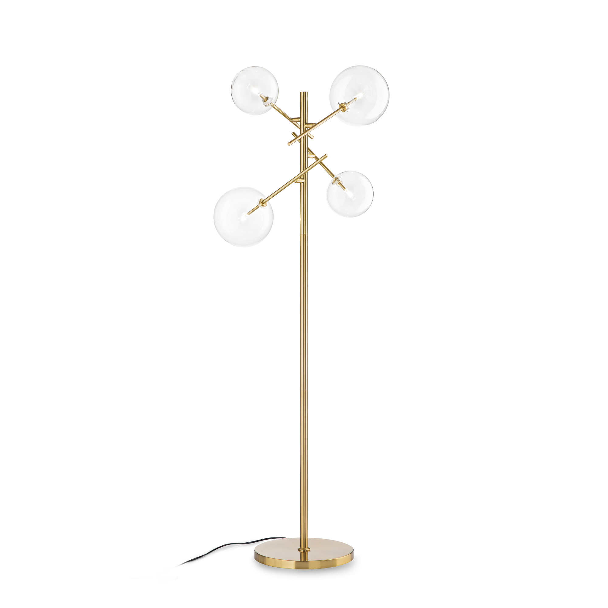 EQUINOXE PT4 Stehleuchte aus Messing von Ideal Lux mit Metallarmgestell mit antikem Messingfinish. Transparente Diffusoren aus mundgeblasenem Glas. Glühbirnen im Lieferumfang enthalten. Lampe mit integriertem Schalter.