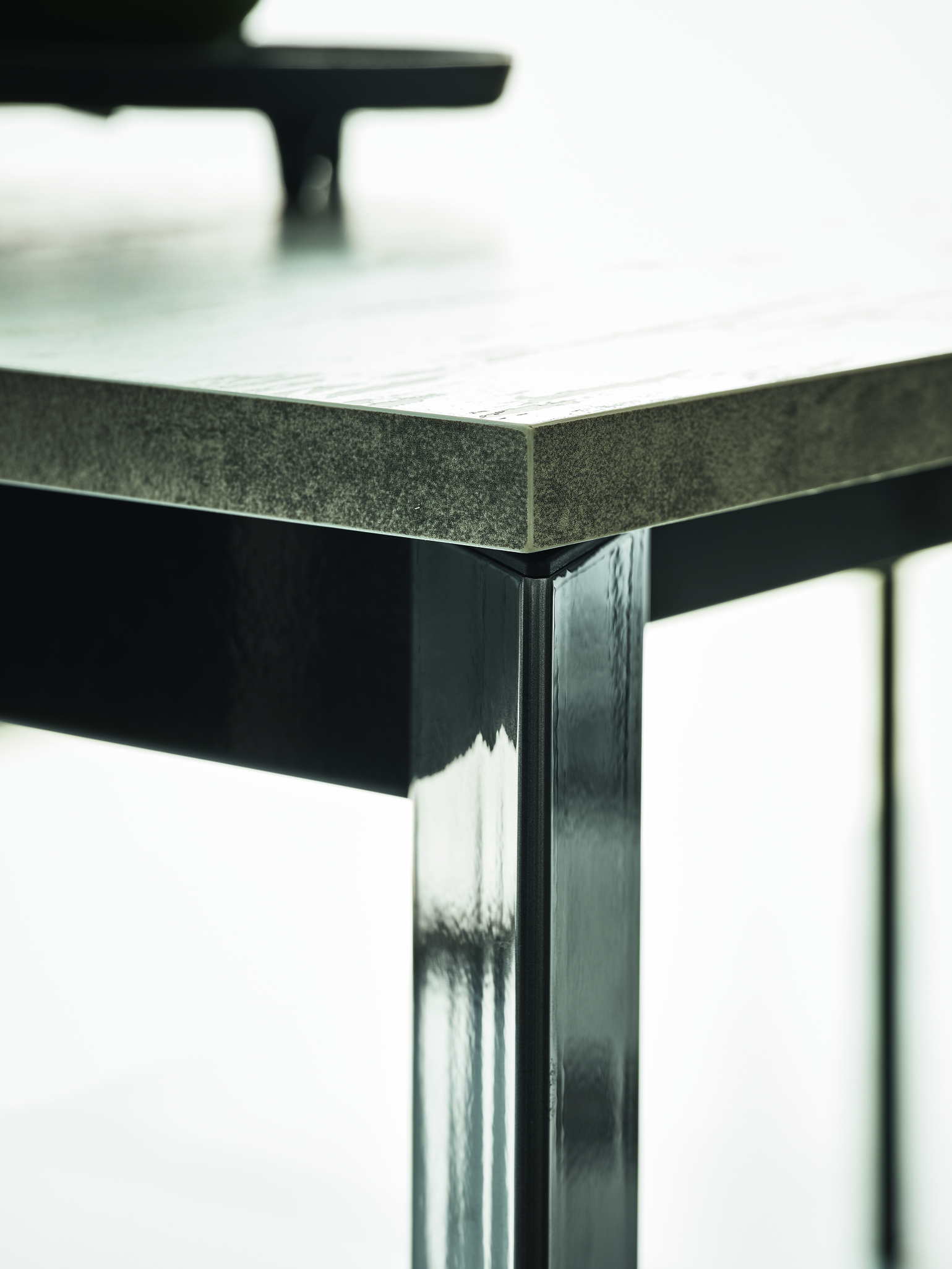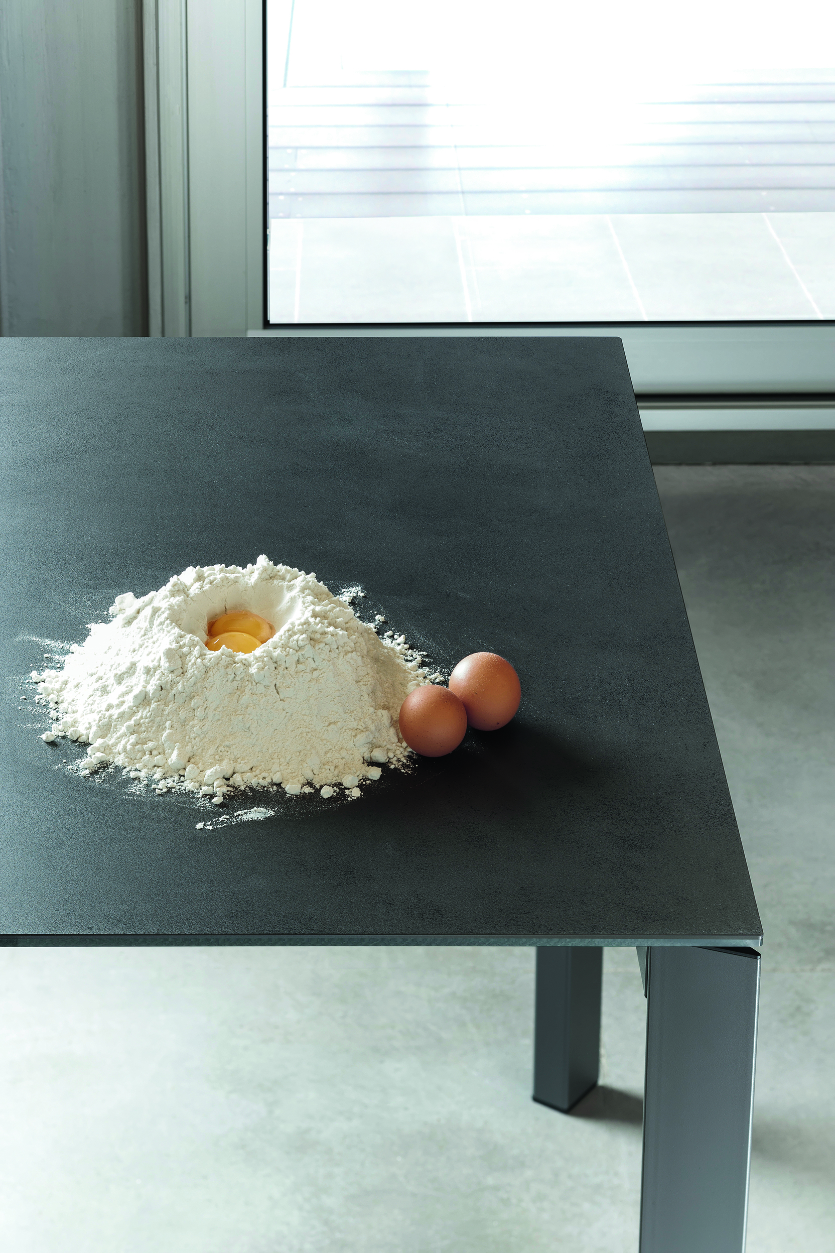 Der ausziehbare Tisch Dublin   von Bontempi ist ein Tisch mit modernem und zeitgenössischem Design, kombiniert mit einer großen Auswahl an Größen und Ausführungen, die ihn in jeden Wohn- und Küchenkontext integrieren. Die Tischplatte ist erhältlich in: Glas, Melamin, SuperCeramic   und SuperMarmor . Die Verlängerungen des Dublin Tisches werden meist passend zur Tischplatte gefertigt. Bei den Varianten aus Glas, SuperKeramik und SuperMarmor besteht die Verlängerung aus matt lackiertem Holz. Das Gestell besteht aus lackiertem Stahl.