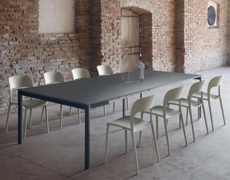 Der Etico Plus von Bontempi ist ein ausziehbarer Konsolentisch mit einem lackierten Stahlgestell und einer Melaminplatte in verschiedenen Ausführungen. Der Etico Plus wird mit fünf Melamin-Verlängerungsplatten geliefert, die ihn in einen praktischen und funktionalen Tisch verwandeln.