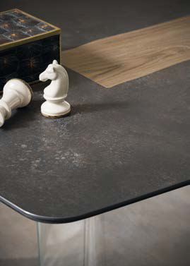 • Die Keramikplatten und die Keramikplatten mit Einsatz aus fossilem Holz sind nur für die ovalisierten Tischmodelle erhältlich. 35 mm und rechteckige Tischstärke. 35mm. (Die Oberseite dieser beiden Modelle ist nur in diesen Ausführungen erhältlich).